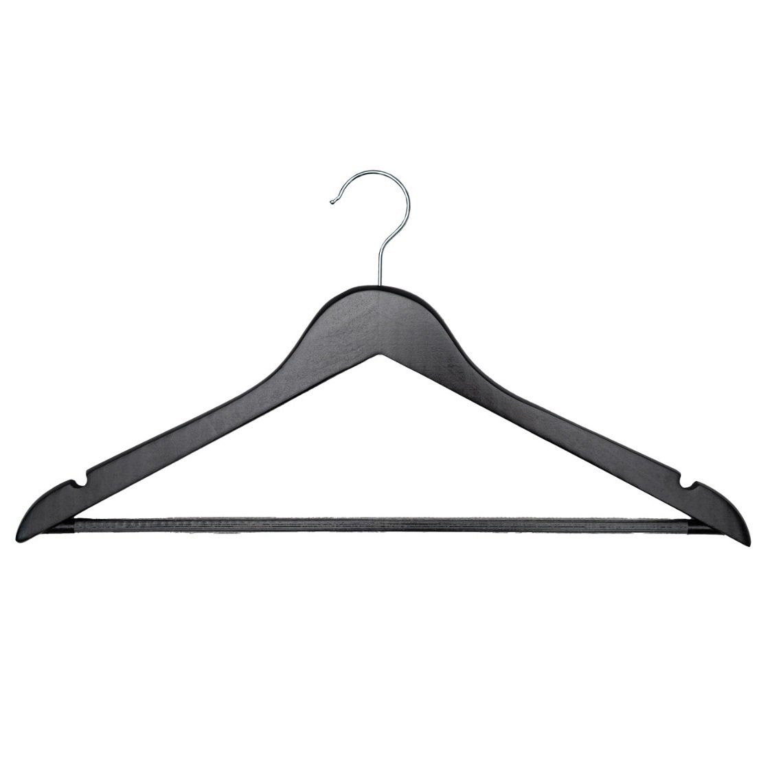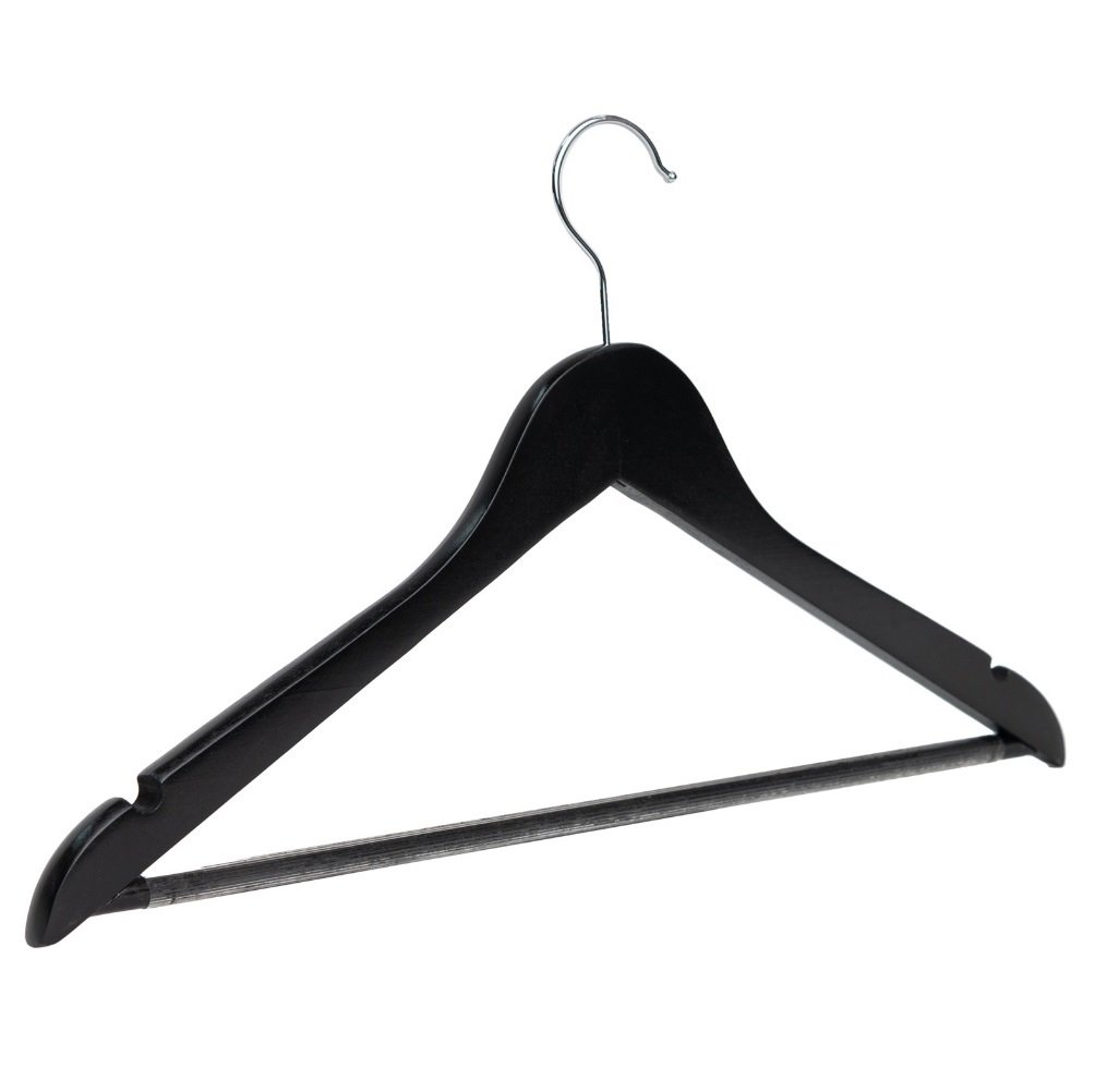 Holzbügel, schwarz lackiert, mit Steg, 44 cm breit – 100 Stück